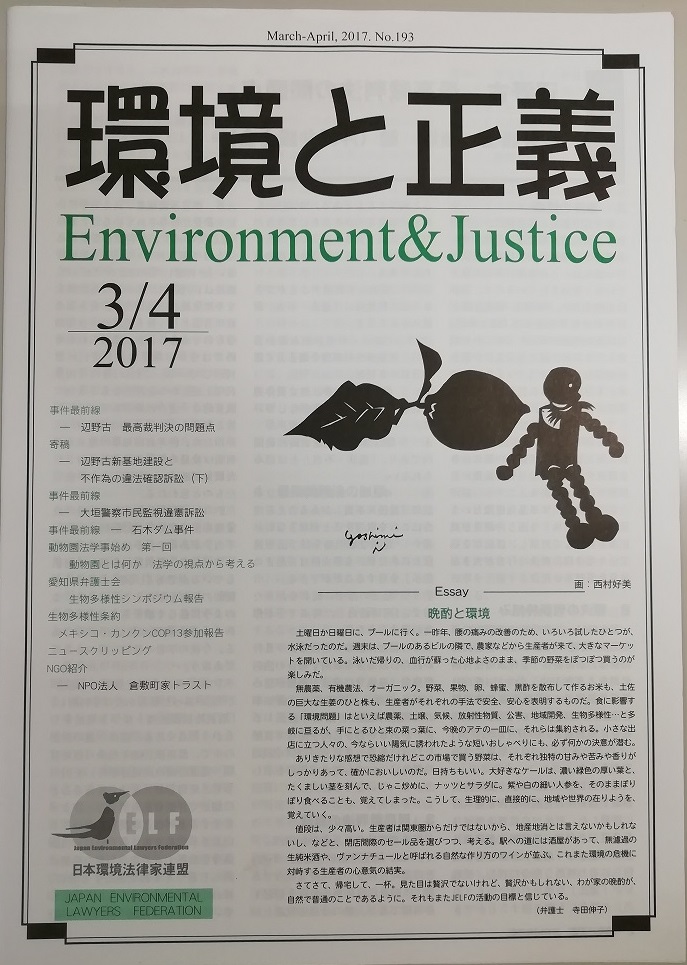 2017年3/4月号(No.193) 掲載記事一覧 エッセイ 晩酌と環境 (弁護士 寺田伸子:第二東京弁護士会) 事件最前線 辺野古最高裁判決の…続きを読む